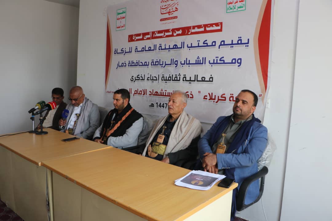 نظم مكتبي فرع الهيئة العامة للزكاة والشباب والرياضة بمحافظة ذمار اليوم فعالية ثقافية بمناسبة يوم عاشوراء ذكرى استشهاد الإمام الحسين بن علي عليهما السلام.