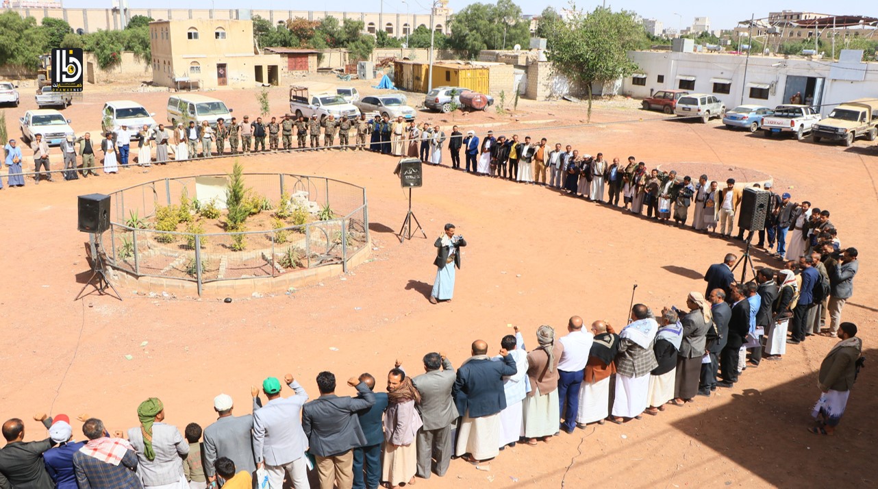 وأشاد المشاركون في الوقفة، بحضور وكيل المحافظة أحمد الضوراني، ومدير عام مكتب الاشغال المهندس يحيى الشامي ونائبه المهندس محمد ريده، بالإنجاز الأمني في إلقاء القبض على الخلية التي قامت بأدوارٍ تجسسيه وتخريبية في مؤسسات رسمية وغير رسمية في البلاد، على مدى عقود لصالح العدو.