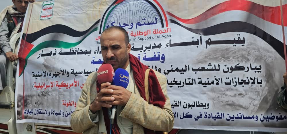 بارك أبناء مديريات جهران والحداء والمنار ومدينة ذمار، قرارات قائد الثورة والانجاز الأمني في ضبط خلية التجسس الامريكية .