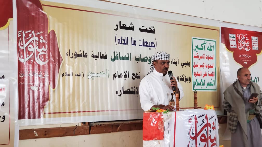 وفي مديرية وصاب السافل أقيمت اليوم فعالية خطابية إحياءً لذكرى استشهاد الإمام الحسين بن علي عليهما السلام تحت شعار " هيهات منا الذلة ".