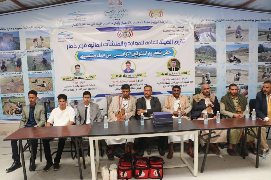 نظم فرع الهيئة العامة للموارد والمنشآت المائية بمحافظة ذمار اليوم، حفلا تكريميا لأوائل الجمهورية للثانوية العامة وكلية الطب من أبناء منتسبيها.