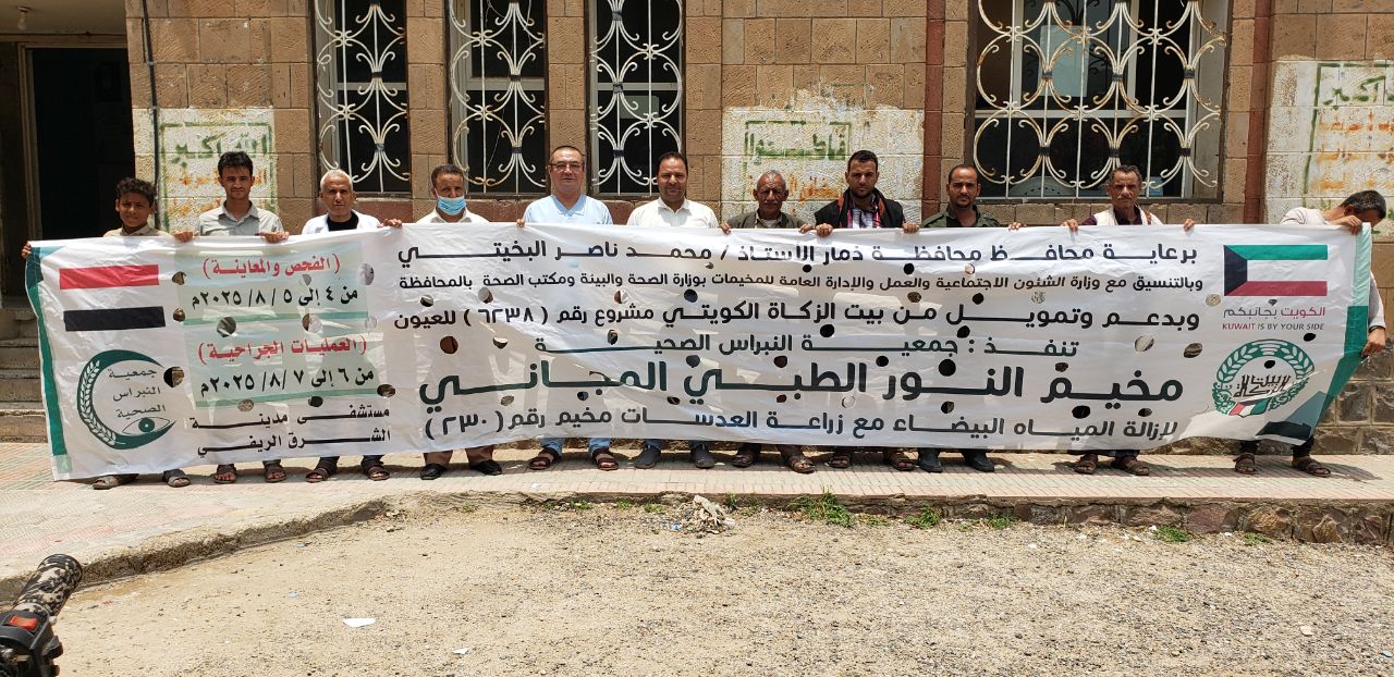 وخلال التدشين أكد مدير المديرية شقدم أهمية المخيم في التخفيف من معاناة مرضى العيون خاصة في ظل الظروف الصعبة جراء استمرار الحصار والعدوان..مشيداً بجهود بيت الزكاة الكويتي وجمعية النبراس والقطاع الصحي في تنفيذ المخيم.