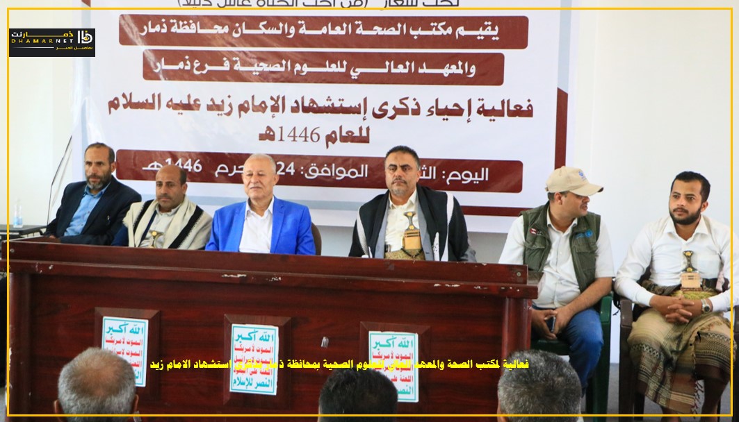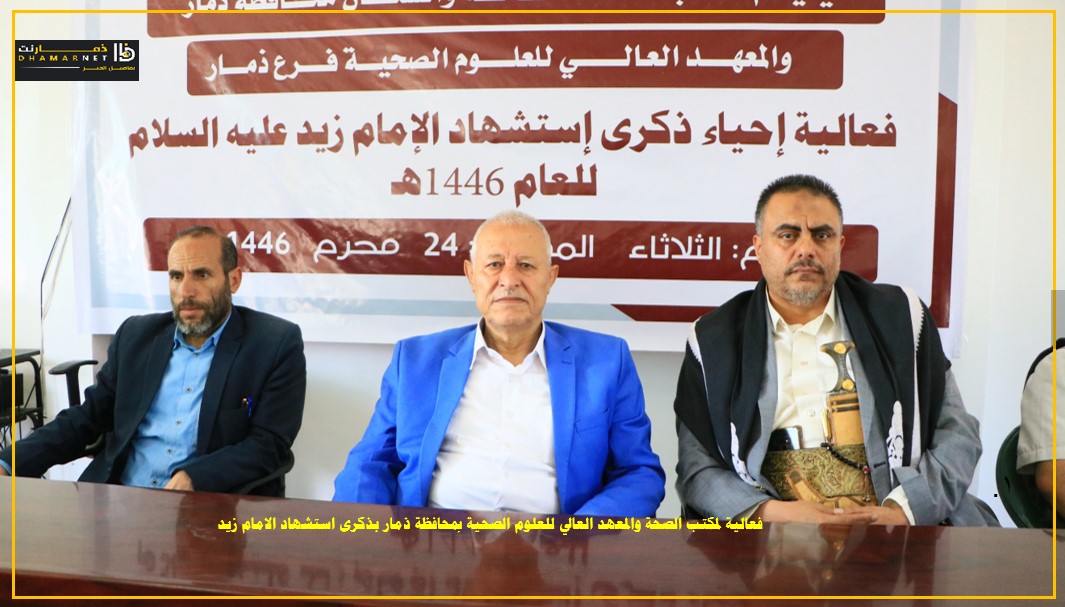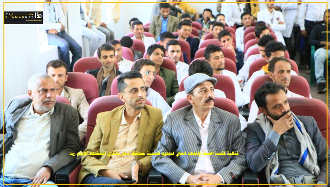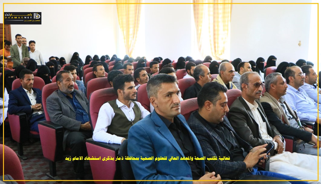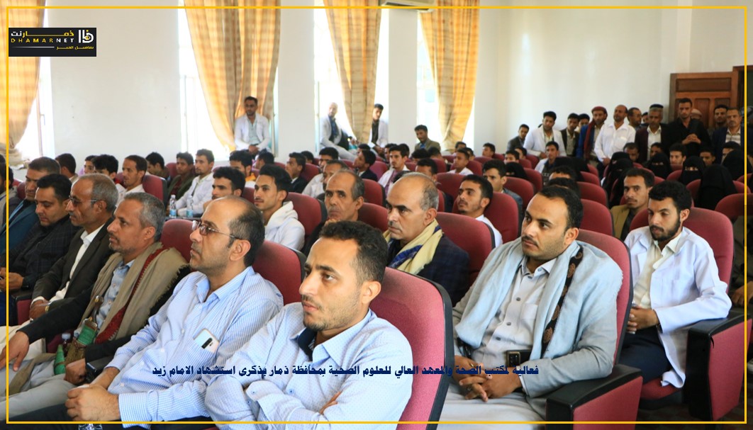 نظم مكتب الصحة العامة والسكان والمعهد العالي للعلوم الصحية بمحافظة ذمار اليوم، فعالية ثقافية بذكرى استشهاد الإمام زيد بن علي عليهما السلام.