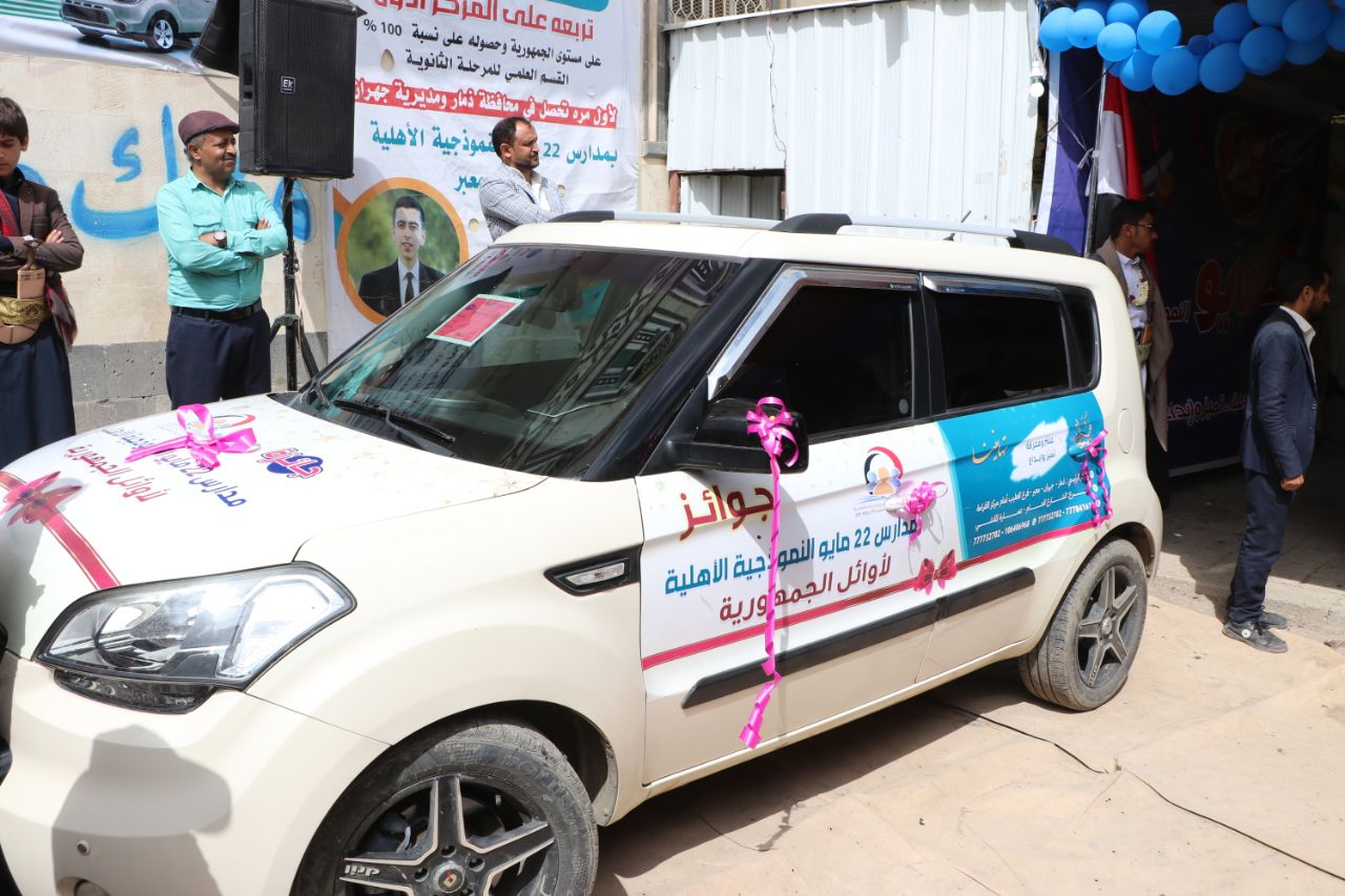وفي نهاية الحفل تم تكريم الحاصل على المركز الأول على مستوى الجمهورية مهند العريق بسيارة ودرع التفوق وكذا تكريم المعلمين والطلاب المتفوقين والمتميزين بشهادات تقدير وجوائز عينية.