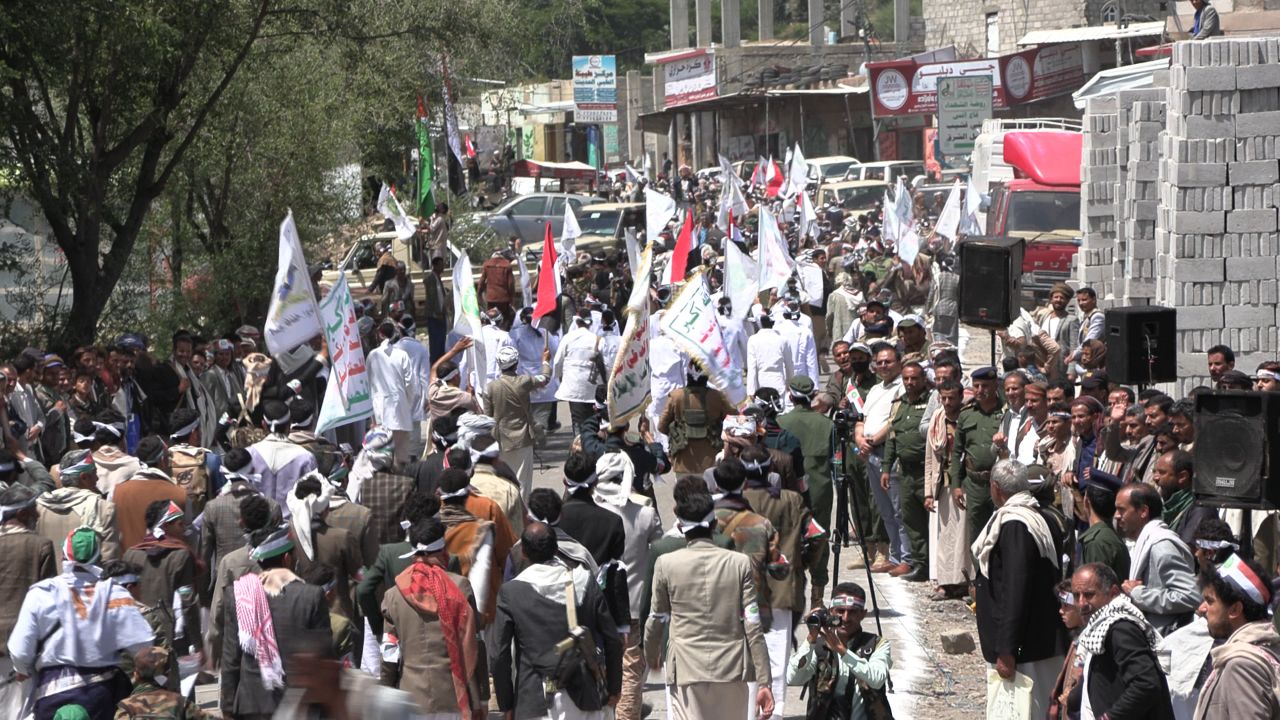 وخلال العرض، رفع المُشاركون العلمين اليمني والفلسطيني.. مُرددين الشعارات المُعبّرة عن الحُرية والعزة والكرامة المُستمدة من ثورة الـ21 من سبتمبر المجيدة التي غيّرت مسار التاريخ اليمني، وأسقطت الوصاية الخارجية، وأعادت للأُمة هويتها الإيمانية الأصيلة.
