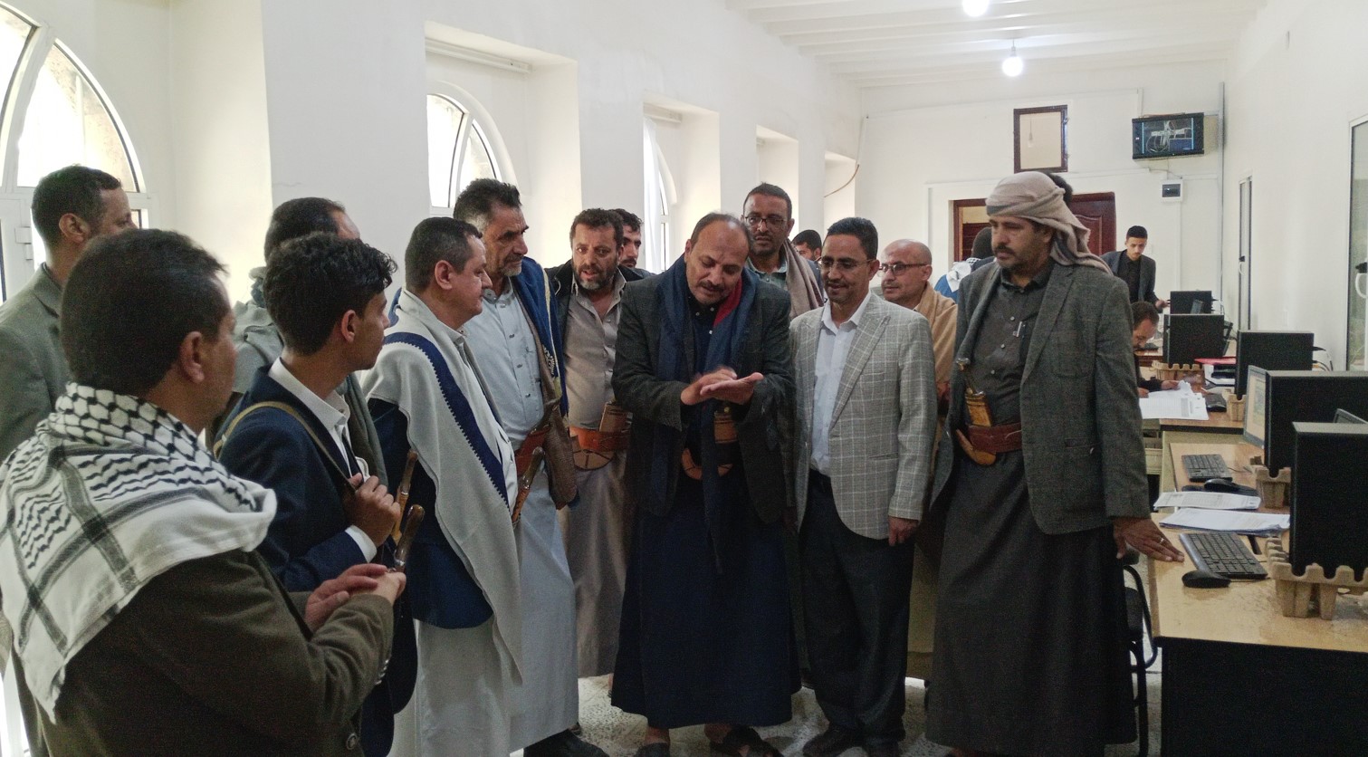واستمع حيدر والضوراني والفقيه من مدير المعلومات عصام الهروجي ومدراء الإدارات العامة بالديوان إلى شرح عن إنجاز الاعمال ورفع التقارير اليومية والشهرية والدورية التواصل مع وزارة الإدارة المحلية عبر نظام الربط الشبكي والاتمتة