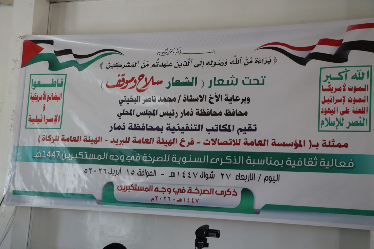 بدوره، أكد مدير فرع هيئة الزكاة بالمحافظة، إبراهيم المتوكل، أن الذكرى السنوية للصرخة في وجه المستكبرين، تُجسّد مشروعًا حضاريًا ونهضويًا يعكس وعي الأمة وقدرتها على مواجهة التحديات بمختلف أشكالها.