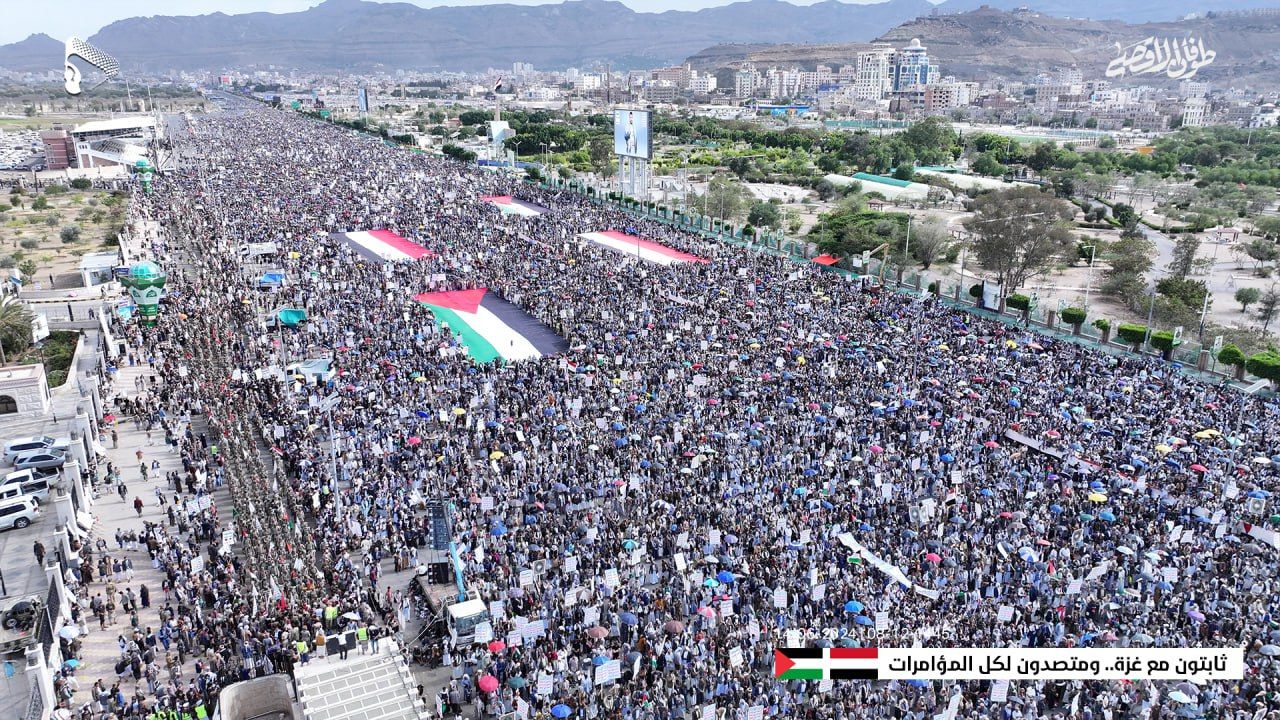 شهدت العاصمة صنعاء والمحافظات اليمنية عصر اليوم، حشودا مليونية في مسيرات "ثابتون مع غزة.. ومتصدون لكل المؤامرات" تأكيداً على ثبات موقف الشعب اليمني في نصرة غزة ومواجهة العدوان.