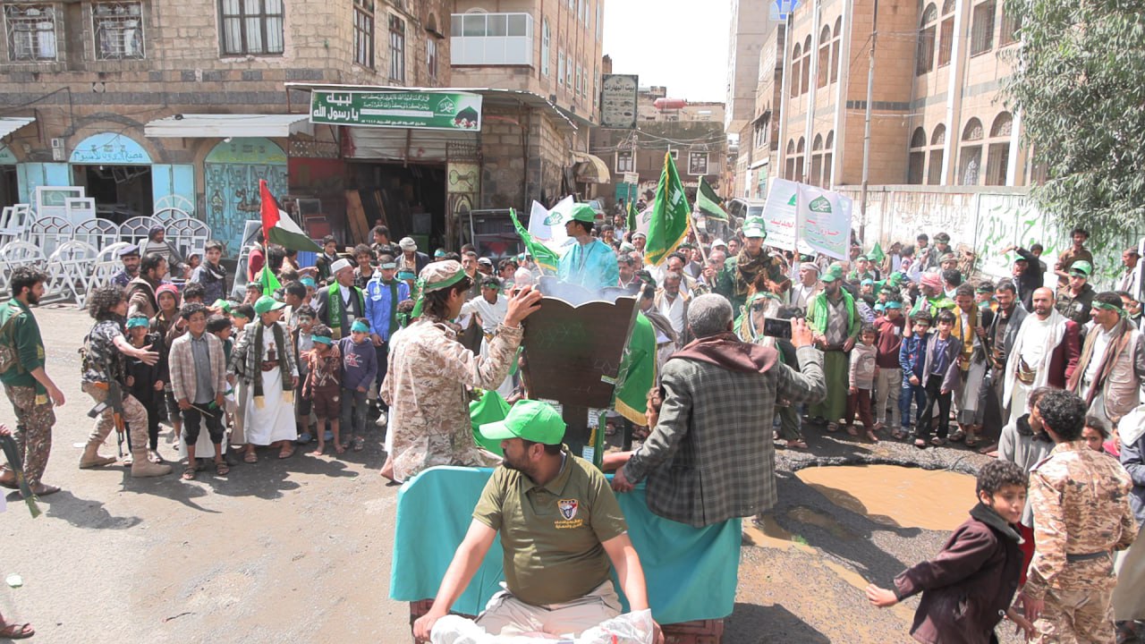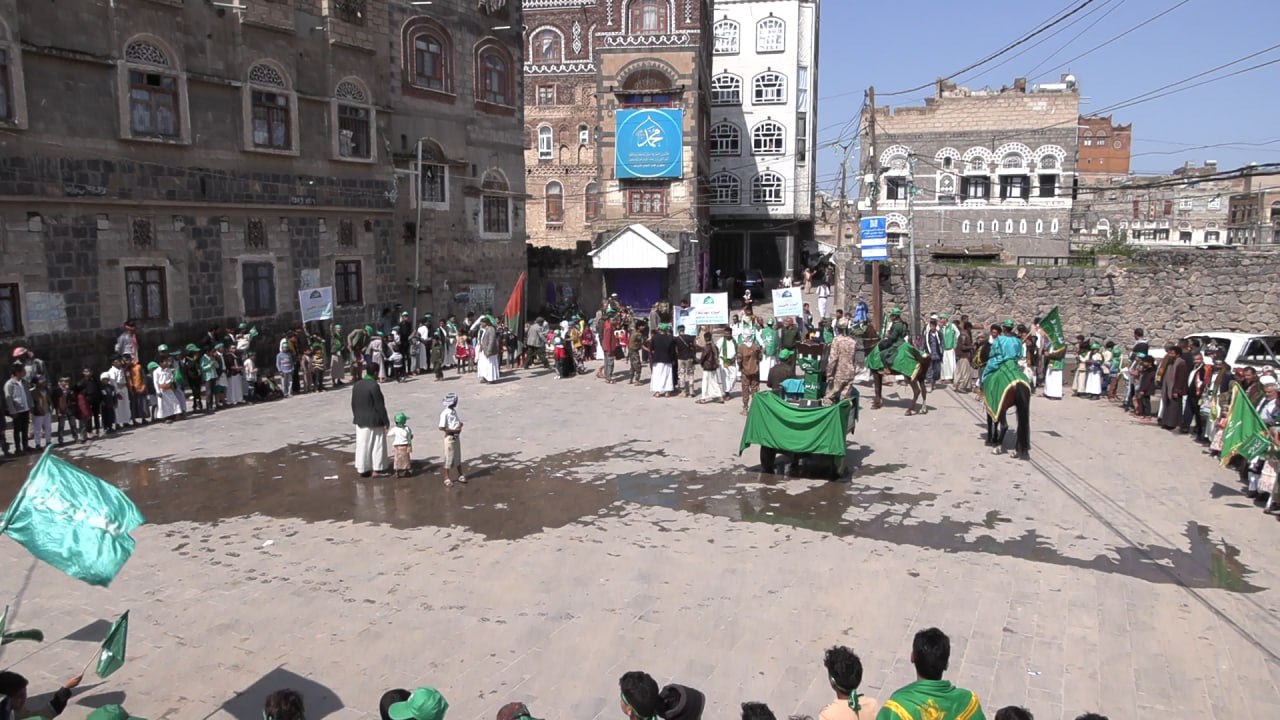 نظم اليوم ابناء حارات الجراجيش والخير والخزان والاسد والتعاون والجديد والامير والطعام بمدينة ذمار عرضا كرنفاليا بمناسبة المولد النبوي الشريف