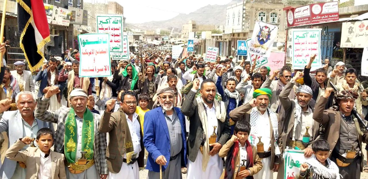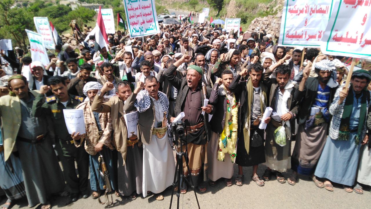 وفي المسيرة والوقفات توجه المشاركون بالحمد والشكر لله تعالى على الانتصارات العظيمة التي تحققت على يد مجاهدي القوات المسلحة المنكلة بالأعداء في البحرين الأحمر والعربي والبحر الأبيض المتوسط والمحيط الهندي