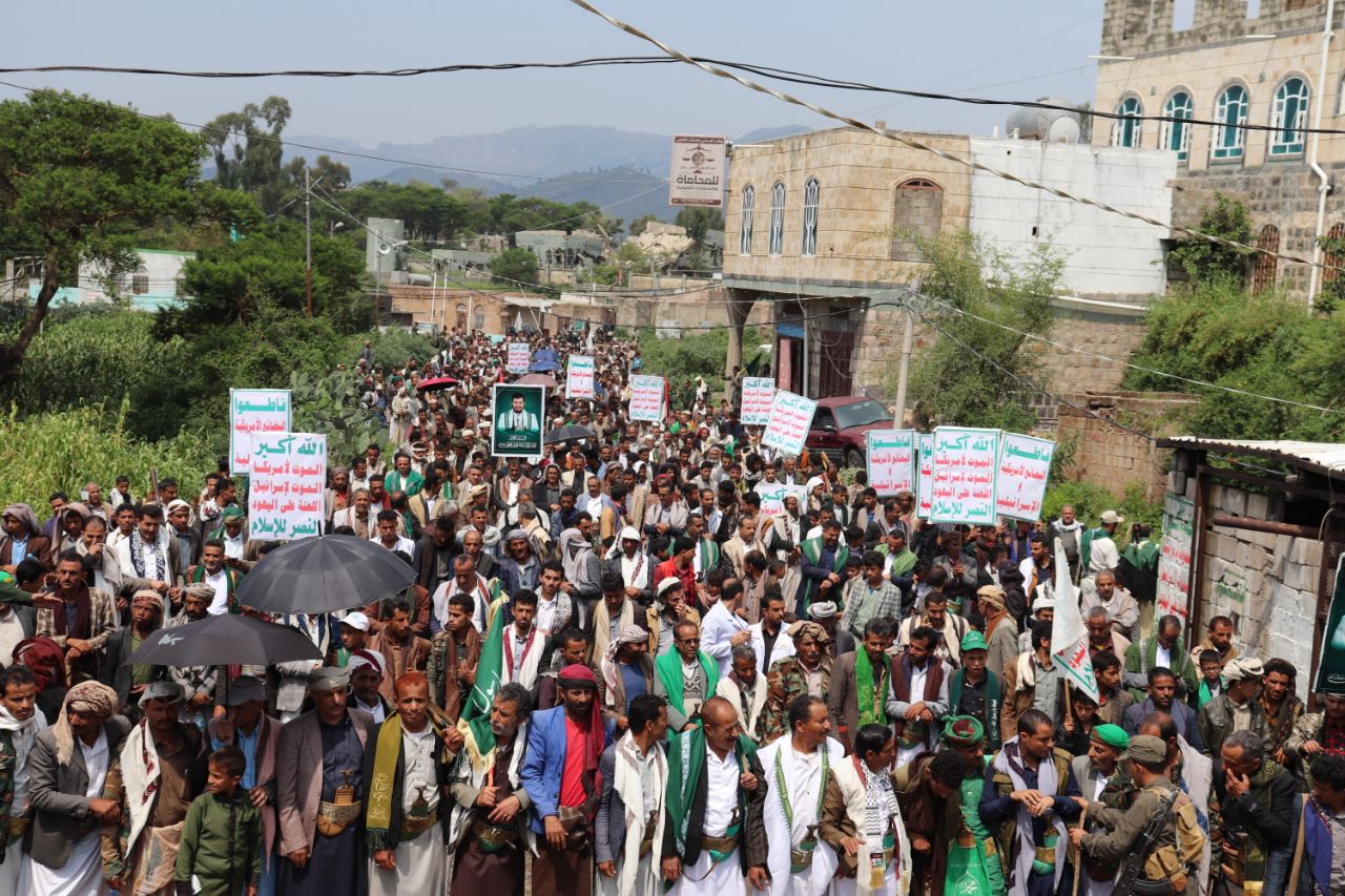 كما شهدت مديرية وصاب السافل اليوم مسيرتين جماهيرية حاشدة تحت شعار "مولد نبي الهدى.. دعوة لنصرة غزة والأقصى"