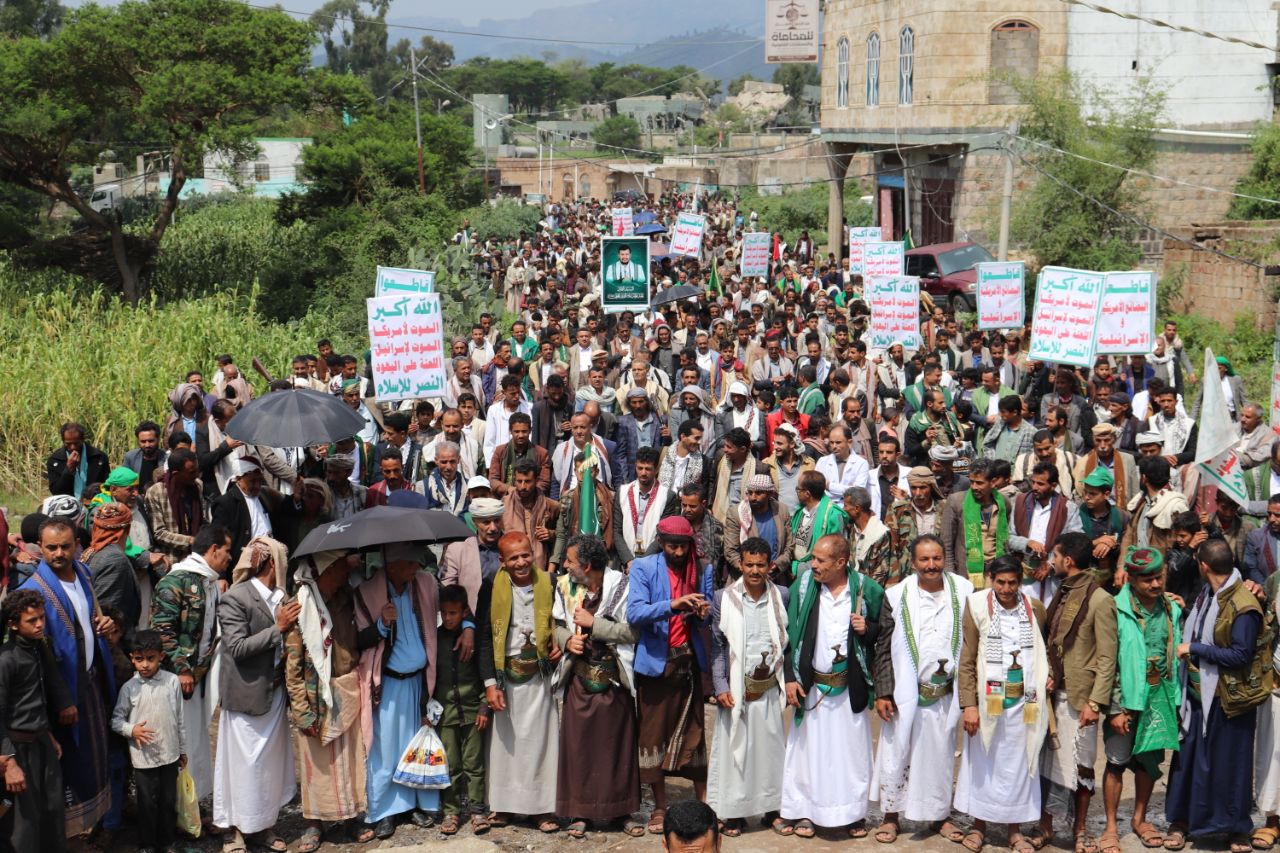 شهدث مدیریة عتمة بمحافظة ذمار اليوم مسيرة جماهيریة حاشدة تصرة لغزة والأقصی تحت شعار» مولد نبی الهدی-دعوة لنصرة غزة والآقصی «