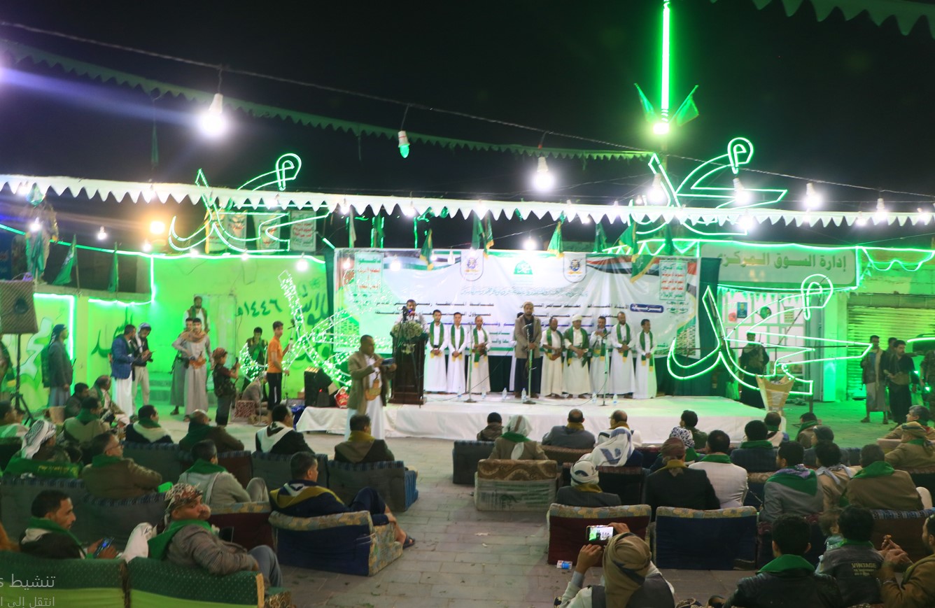 نظم السوق المركزي القديم وقسم الشهيد الشخظة، بمدينة ذمار مساء اليوم، أمسية فرائحية شعرية وانشادية بمناسبة ذكرى المولد النبوي الشريف.